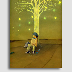 作品の中に登場する気球に「希望」の意味を込め、旅の経験からイメージを膨らませた絵を描いている。